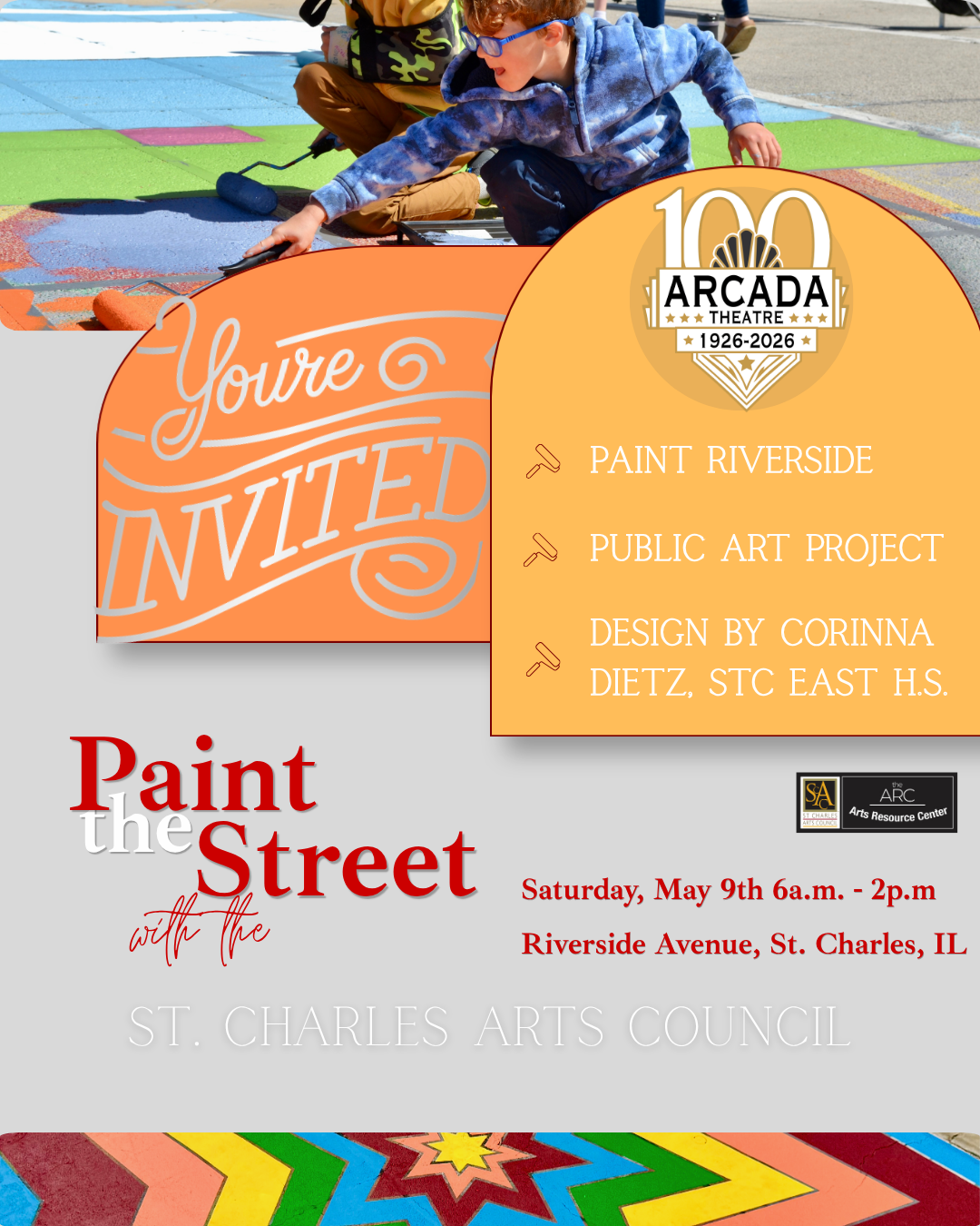 The design is set thanks to St. Charles East High School Student, Corinna Dietz with the mentorship of St. Charles Arts Council board member, Howard Russo. We are so excited to reveal it on the big day!